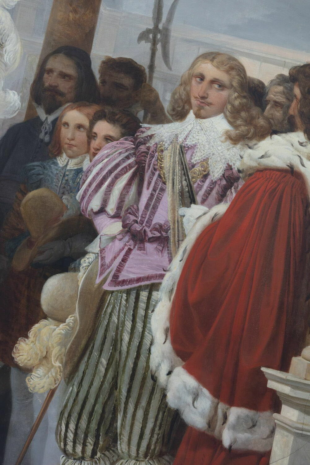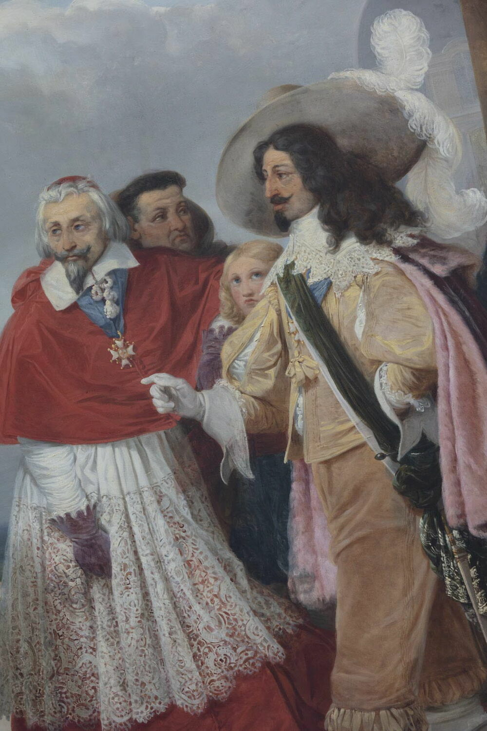 scène historique (Poussin Nicolas, Louis XIII, Richelieu cardinal de, réunion, noblesse, habit, présentation, élément d'architecture)