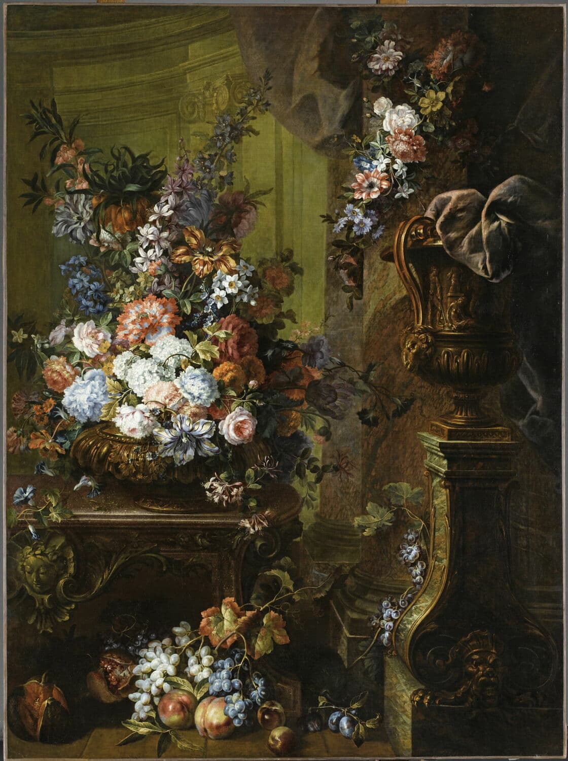 Vase d'or, fleurs et fruits