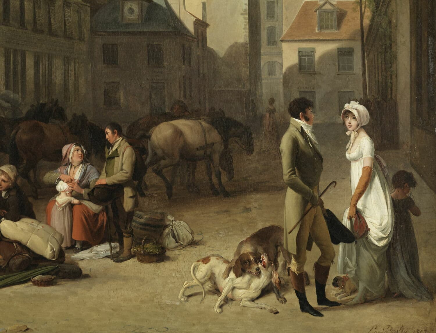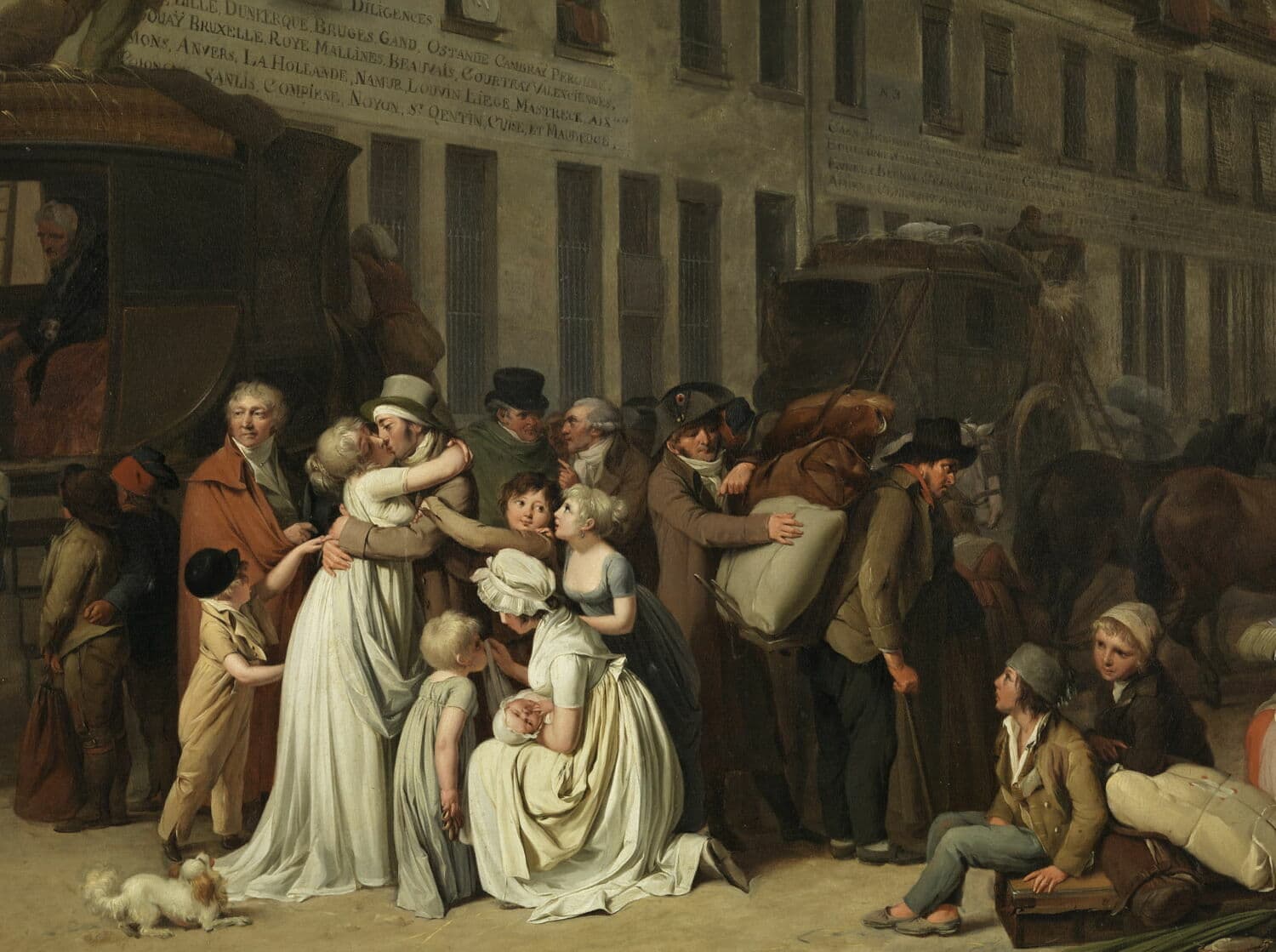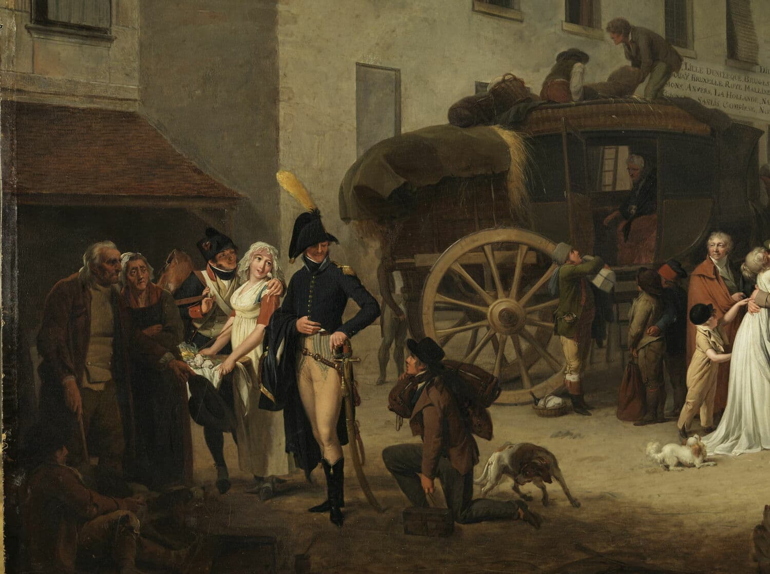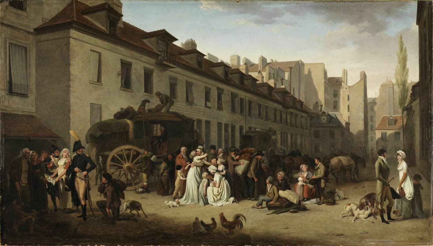L'arrivée d'une diligence dans la cour des Messageries, rue Notre-Dame-des-Victoires, à Paris