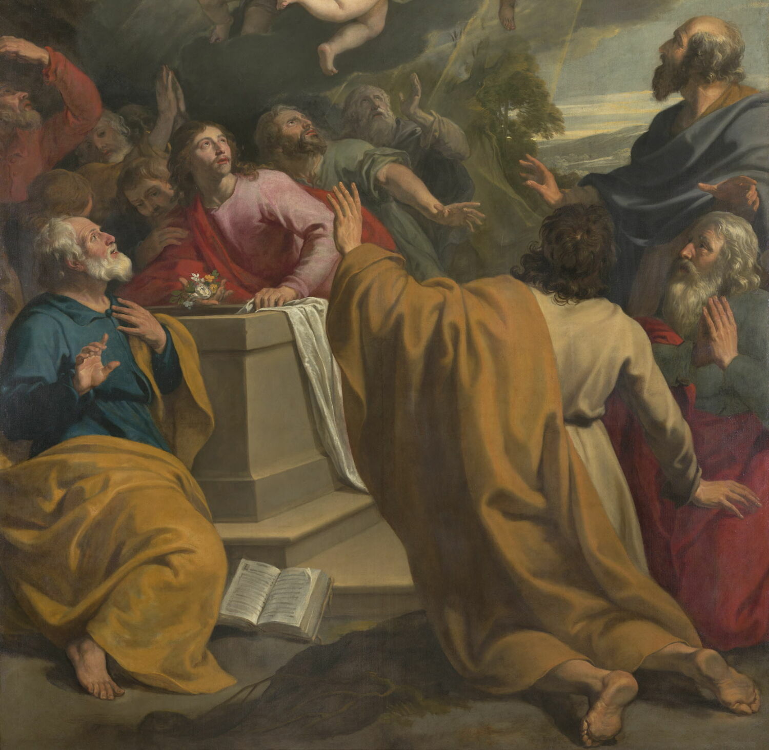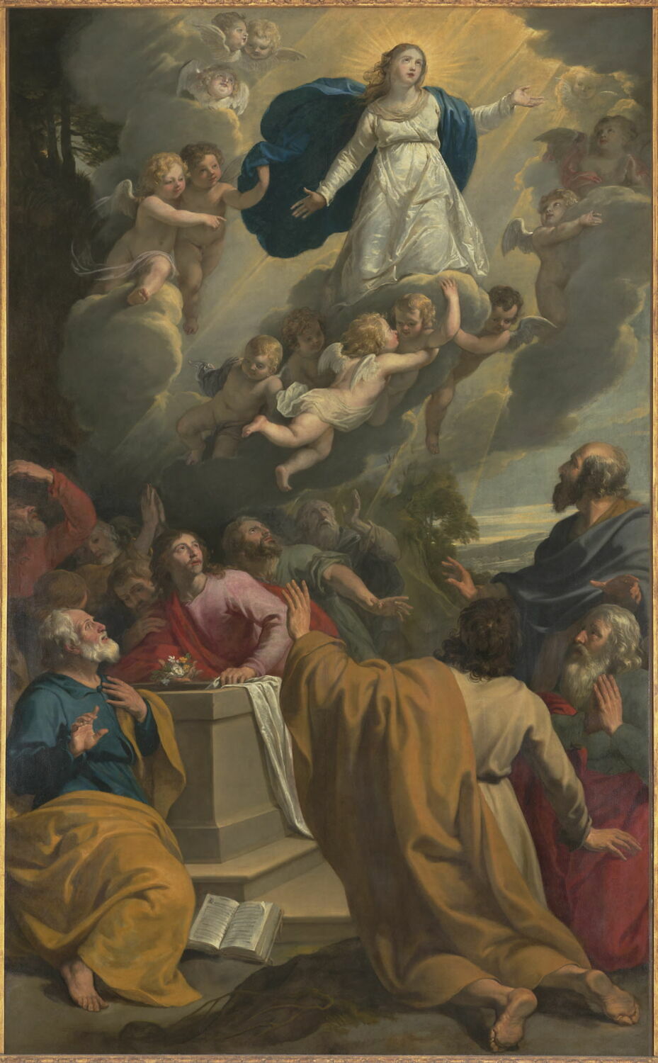 scène biblique (Assomption, putti, livre, objet du culte, tombeau)