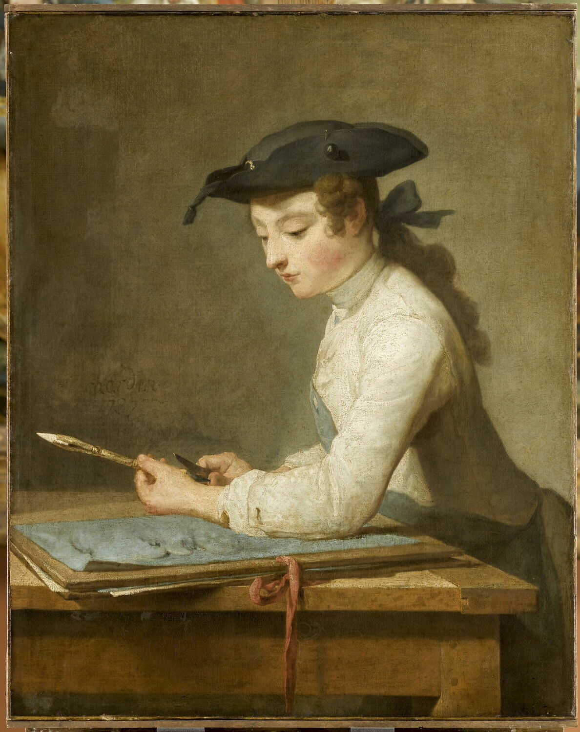 POP | Plateforme ouverte du patrimoineJeune dessinateur taillant son crayon