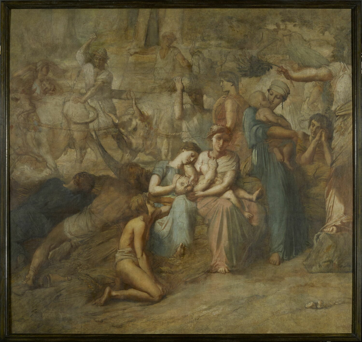 groupe de figures (allégorie : la paix, femme, amour maternel, nourrisson, labour, moisson)