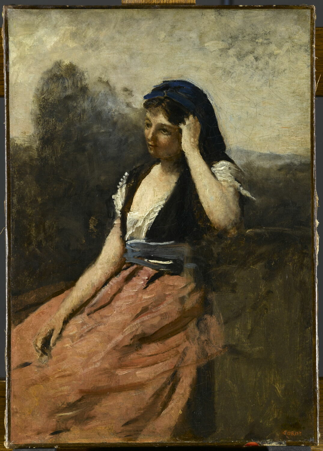 POP | Plateforme ouverte du patrimoineJeune femme à la jupe rose, dit aussi Jeune femme accoudée sur le bras gauche