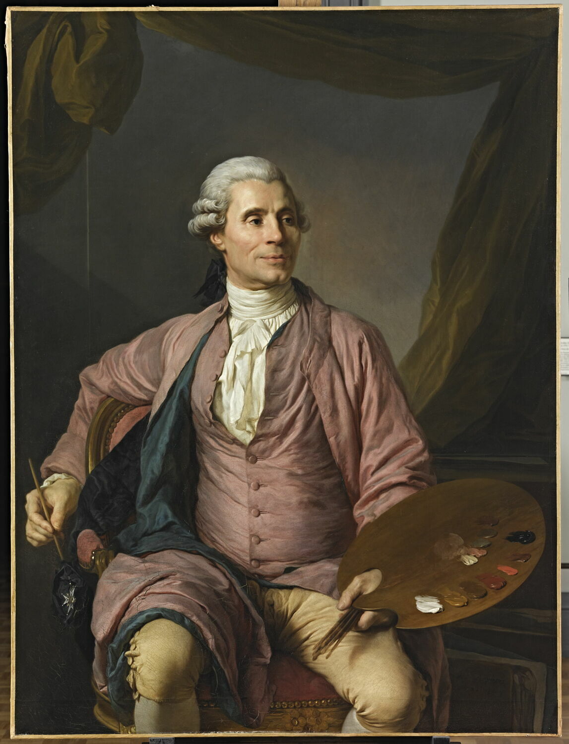 portrait (Vien Joseph Marie, homme, peintre, assis, à mi-corps, de trois-quarts, palette, pinceau)