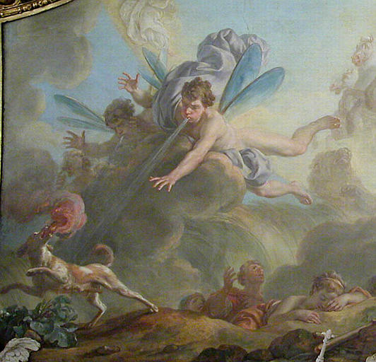 scène mythologique (allégorie : été, Cérès, femme, nuage, Phaéton, char myth, ange)