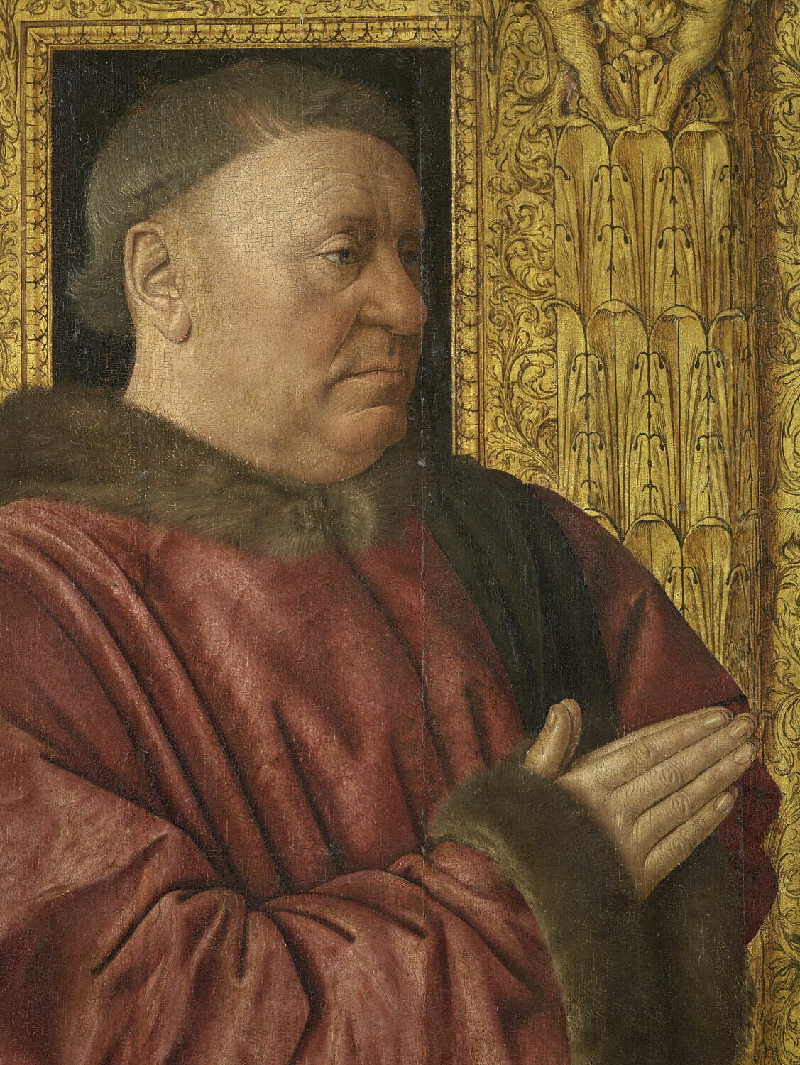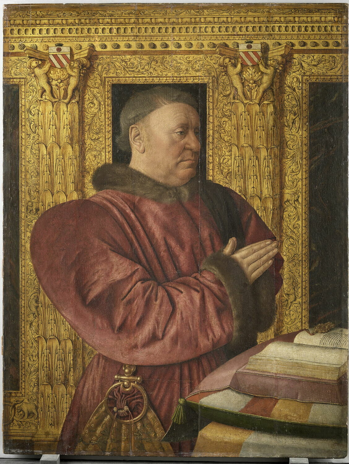 portrait (Jouvenel des Ursins Guillaume, homme, à mi-corps, de trois-quarts, prière, fourrure, livre, bijou)