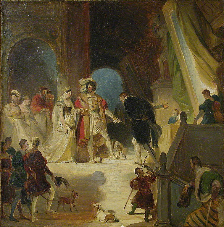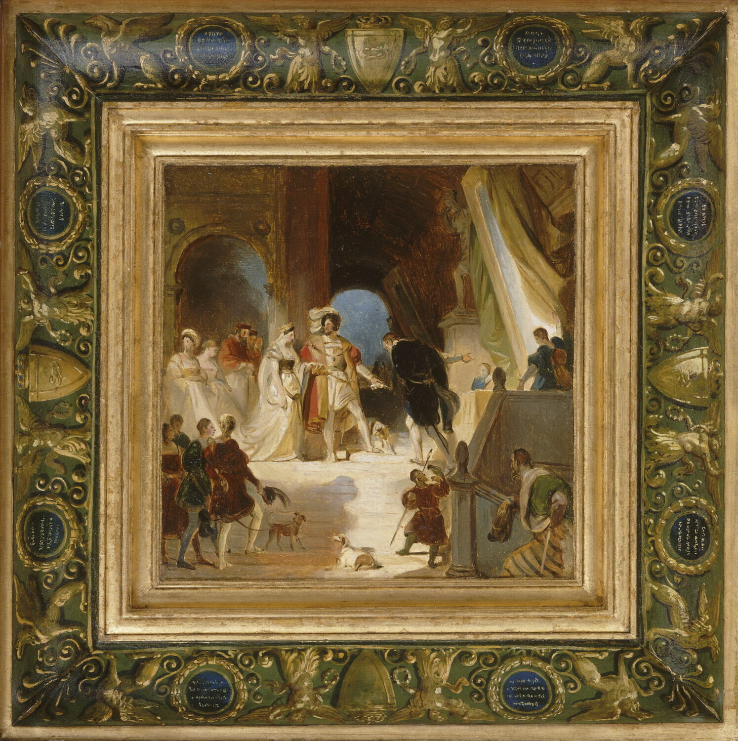 scène historique (François Ier, réunion, noblesse, Le Primatice, salut, remise, peinture, nain, chien)