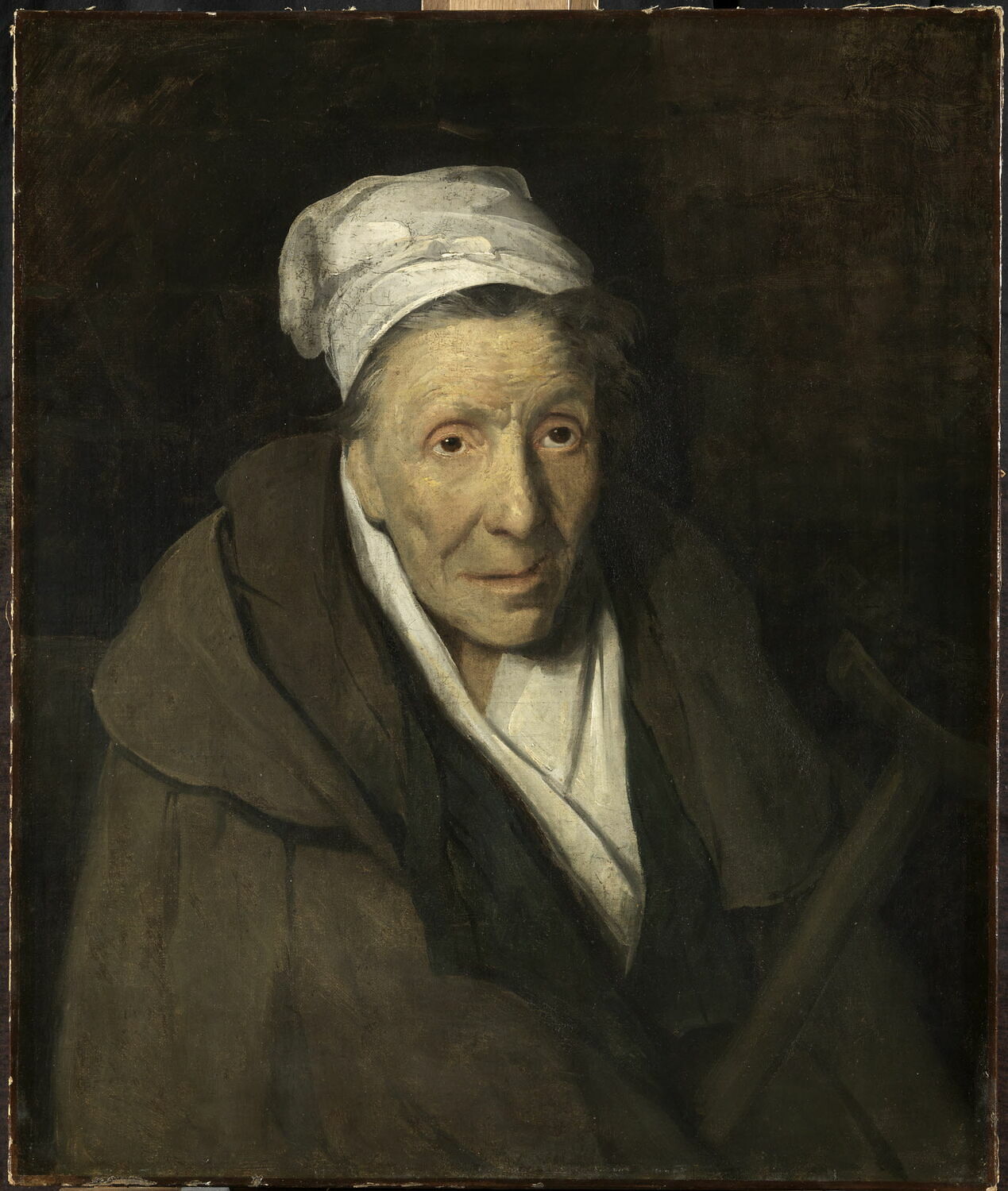 portrait d'inconnu (femme, fou, à mi-corps, de trois-quarts, coiffe)