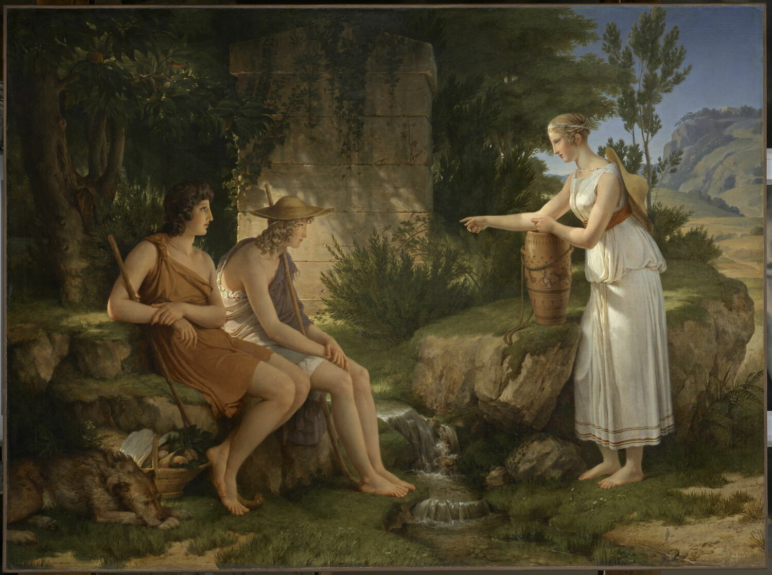 scène (Amyntas, jeune homme, berger, conversation, paysage)