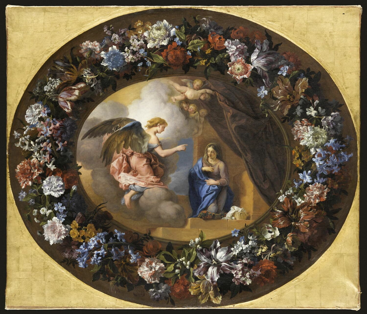 de La Fosse : Paris, 1636 ; Paris, 1716 ; couronne de fleurs peinte par J. B. Monnoyer
