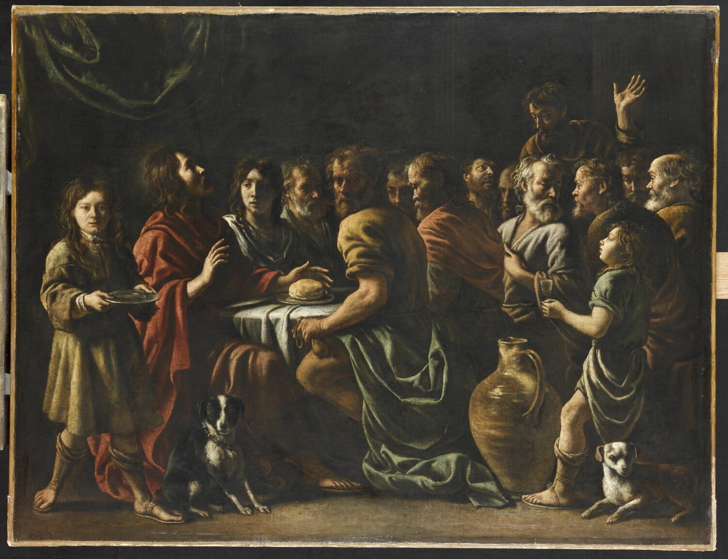 scène biblique (Cène, repas, garçon) ; chien