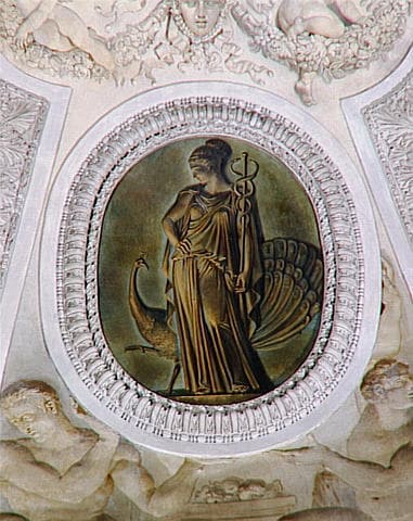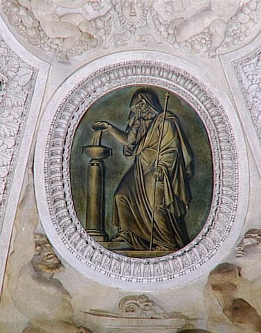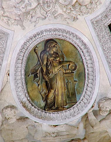 FIGURES D'HOMMES QUI PORTENT QUATRE MEDAILLONS IMITANT LE BRONZE