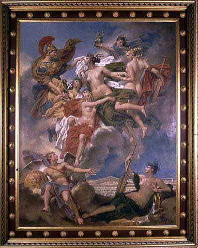 Les Nymphes de Parthénope, emportant loin de leurs rivages, les Pénates, images de leurs dieux, sont conduites par la déesse des Beaux-Arts sur les bords de la Seine