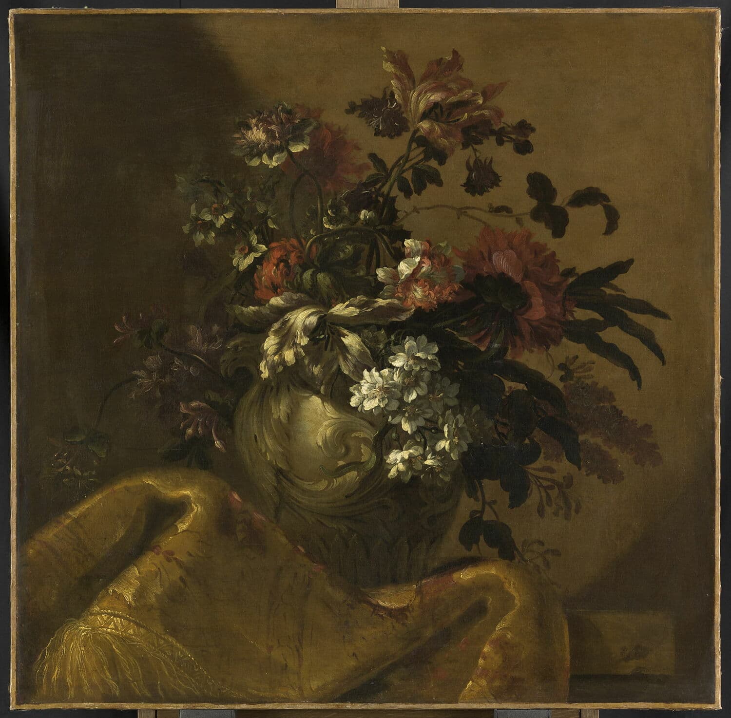 POP | Plateforme ouverte du patrimoineFleurs dans un vase de marbre blanc sur un tapis de brocart