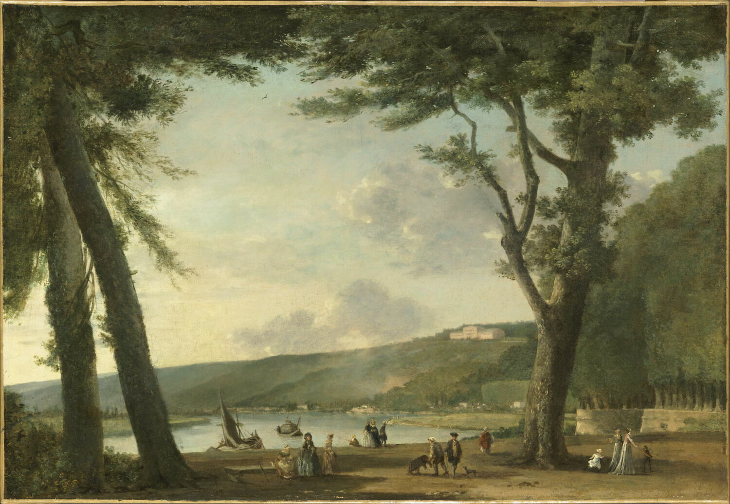 paysage (colline, Hauts-de-Seine d, Seine, parc, Saint-Cloud, barque, bateau à voiles) ; promenade