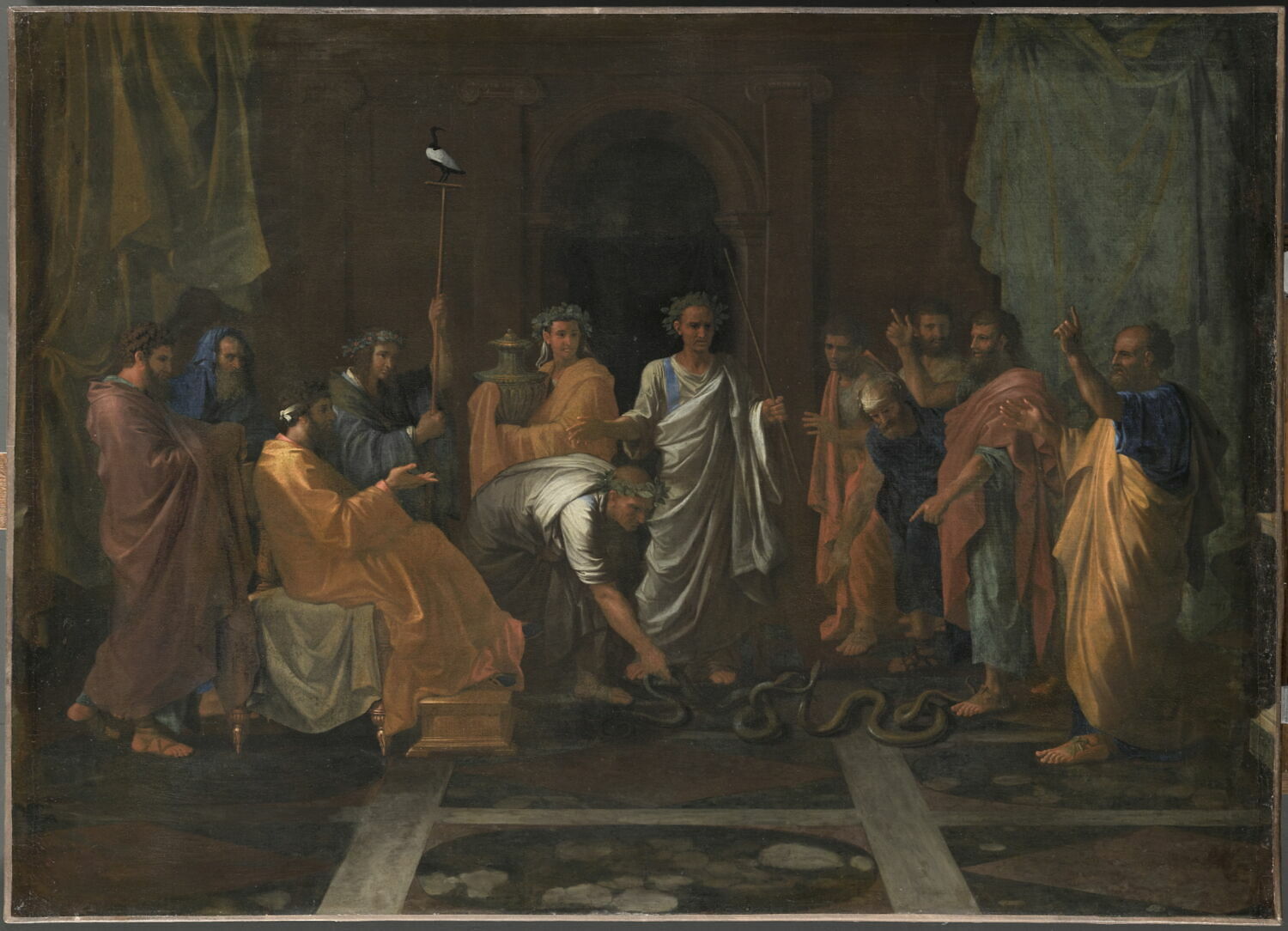 scène biblique (Moïse, miracle, souverain : Egypte, bâton, serpent, agression animale, Aaron) ; palais (intérieur)
