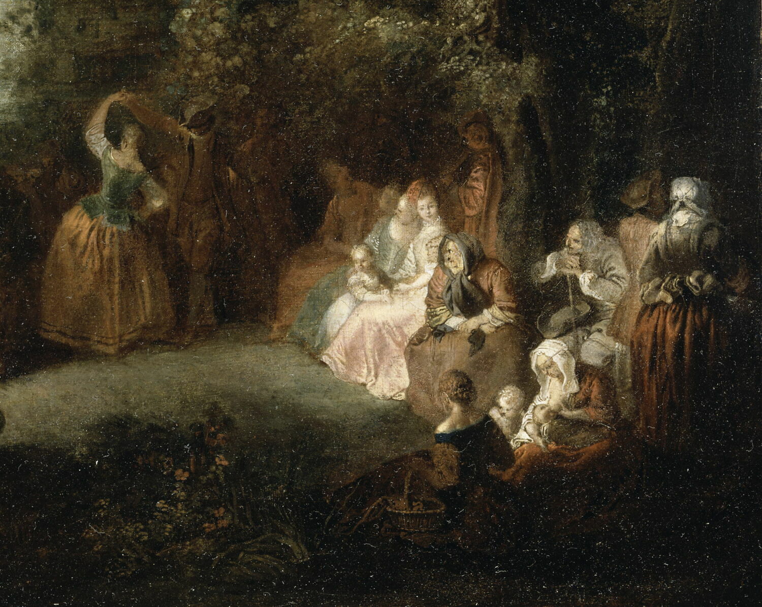 scène (fête champêtre, danse, homme, femme, vieux)