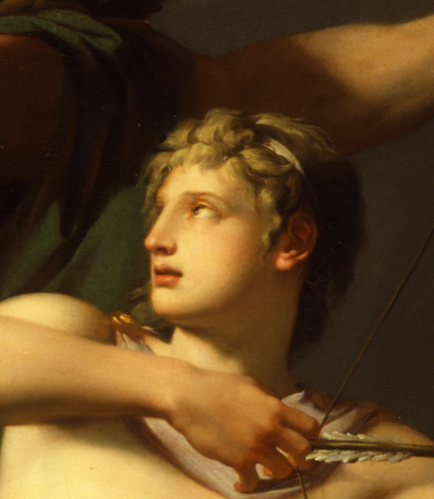 scène mythologique (Chiron, Achille : nu, enseignement pratique : arc)