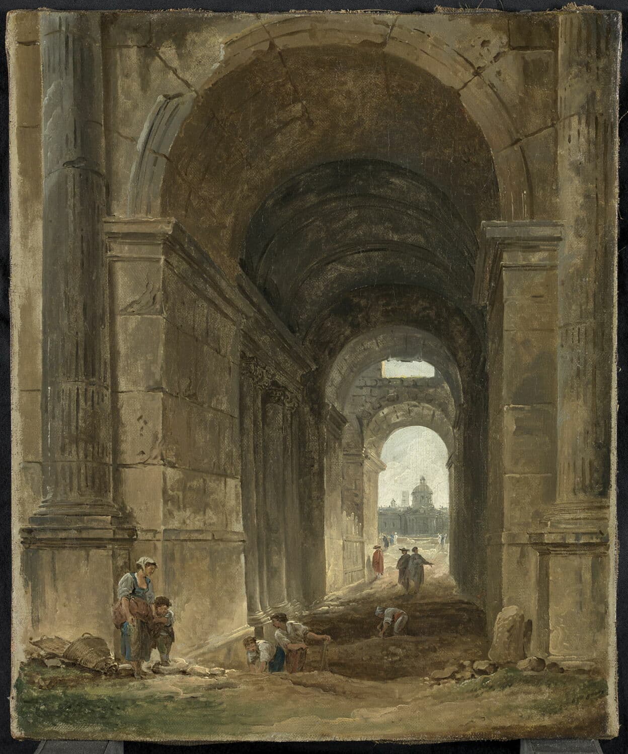 Vue du guichet du Louvre vers le collège des Quatre-Nations (plus tard Institut de France), vers (ou après) 1780