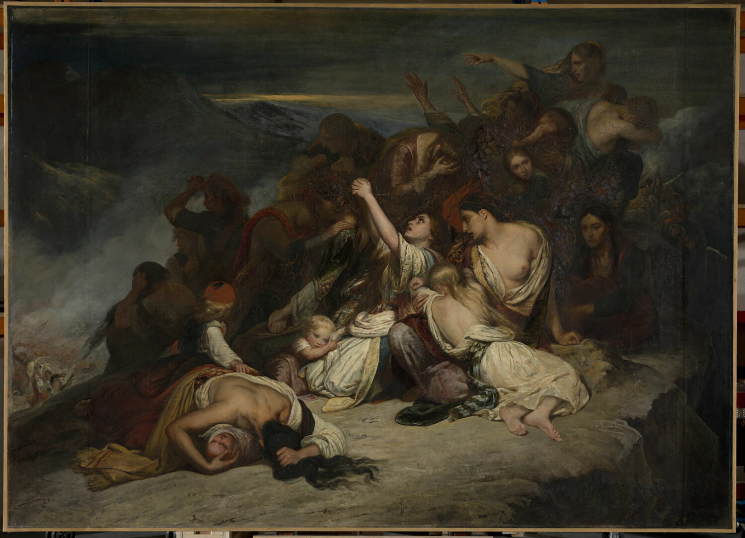 scène (femme, douleur, enfant, montagne)