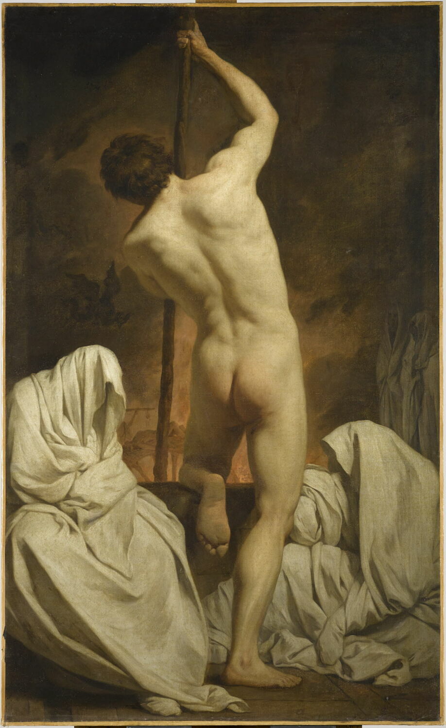 scène mythologique (Caron : nu, allégorie : mort, draperie)