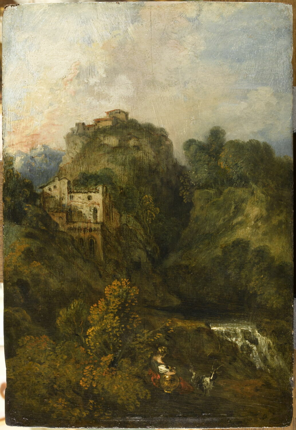 paysage (montagne, cascade, maison, végétation)