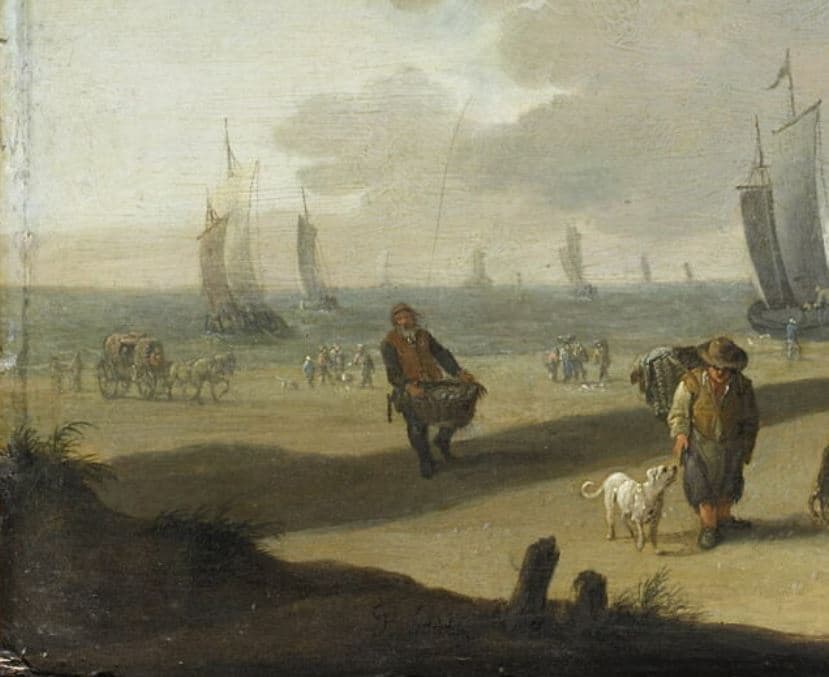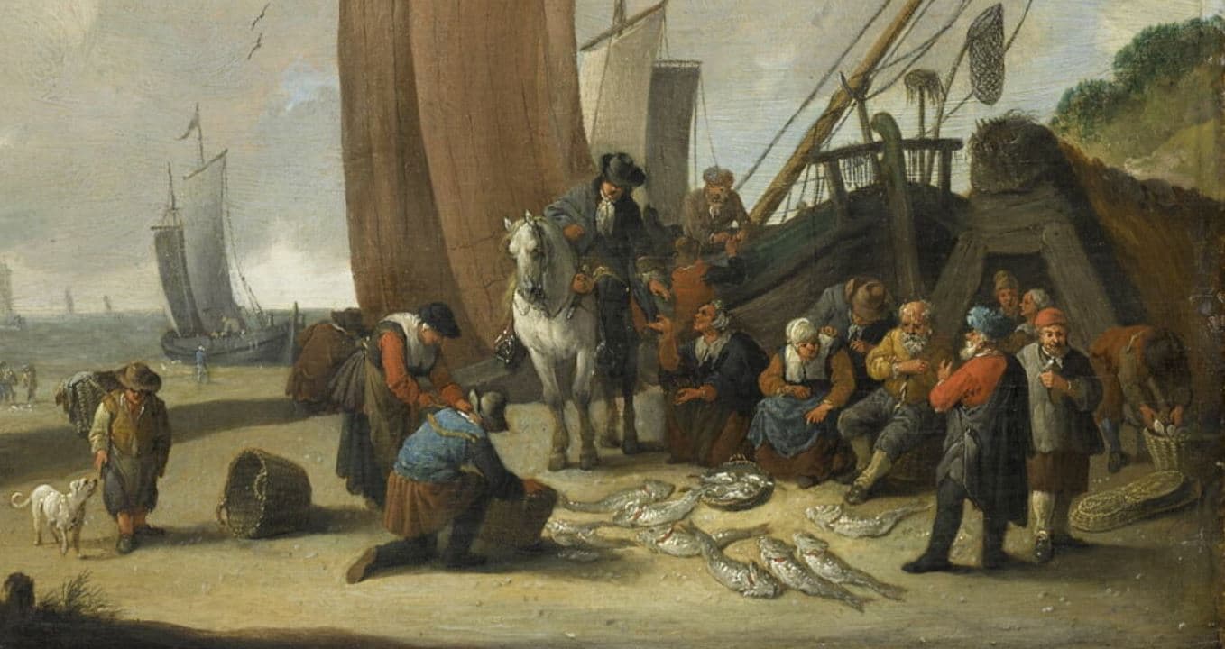 MARCHANDS DE POISSONS SUR UNE PLAGE