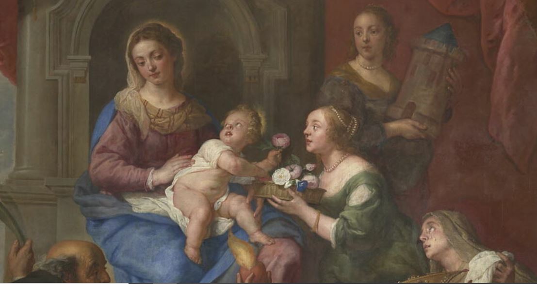 LA VIERGE ET L'ENFANT JESUS AVEC SAINT AUGUSTIN, SAINTE BARBE ET SAINT ANTOINE