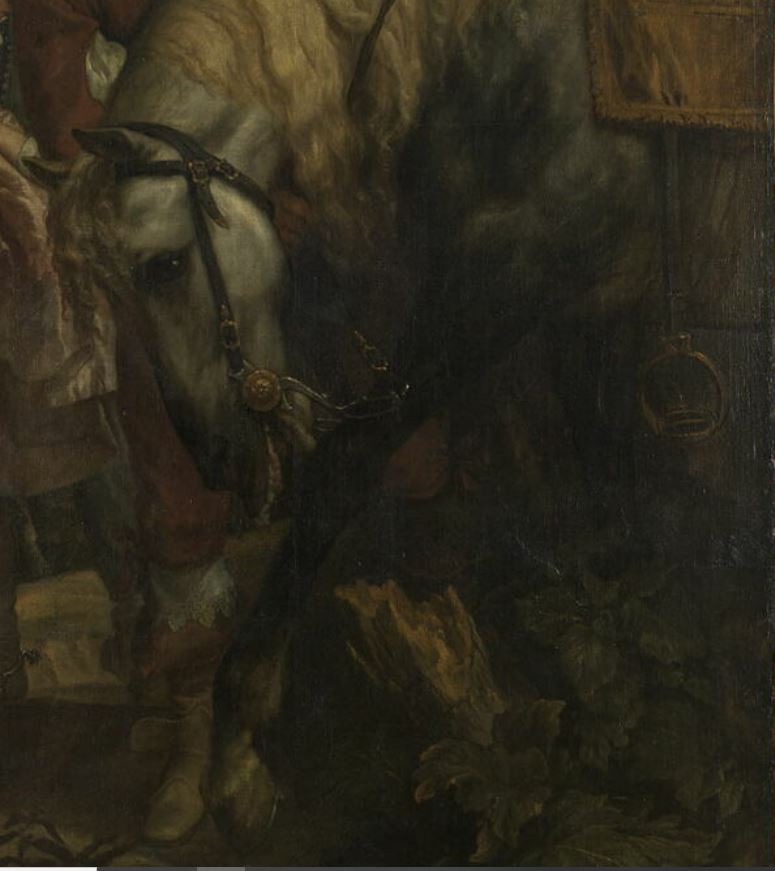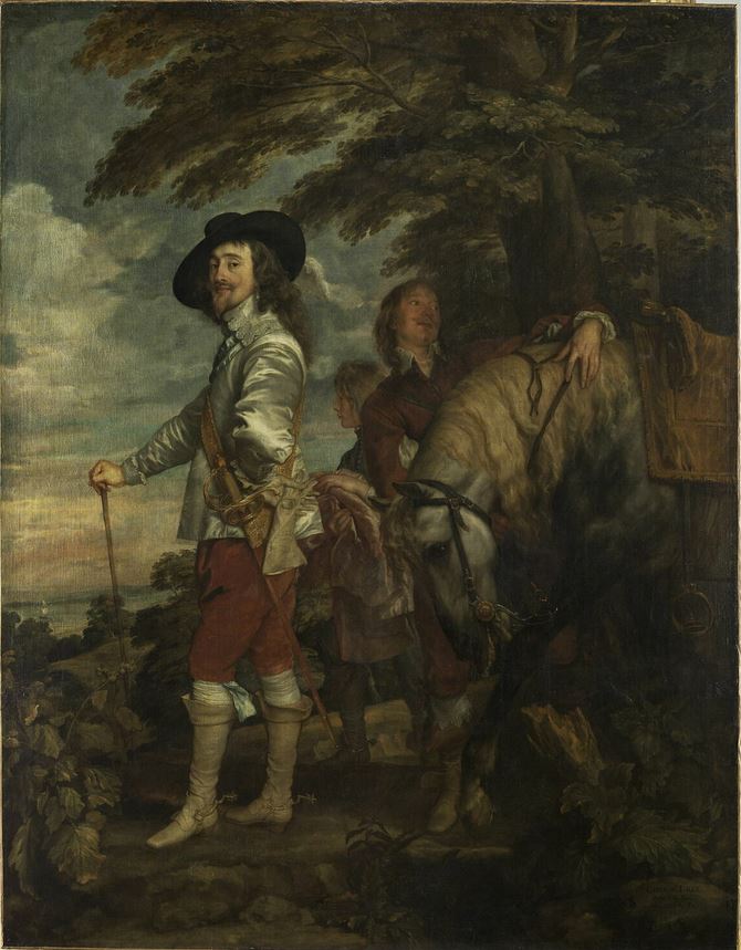 portrait (Charles Ier d'Angleterre, homme, en pied, de trois-quarts) ; serviteur ; cheval ; feuillu