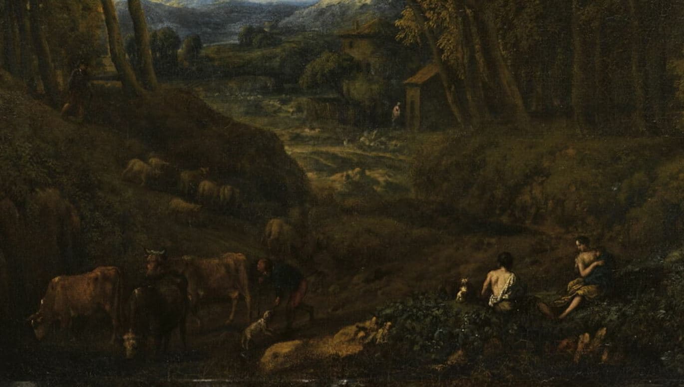 POP | Plateforme ouverte du patrimoinePAYSAGE AVEC BERGERS ET TROUPEAUX DANS UN CHEMIN FORESTIER