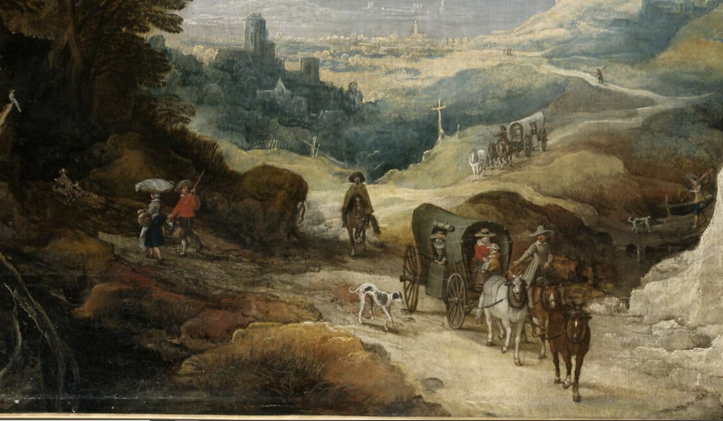 Paysage montagneux ; Paysage montagneux avec deux coches et un cavalier
