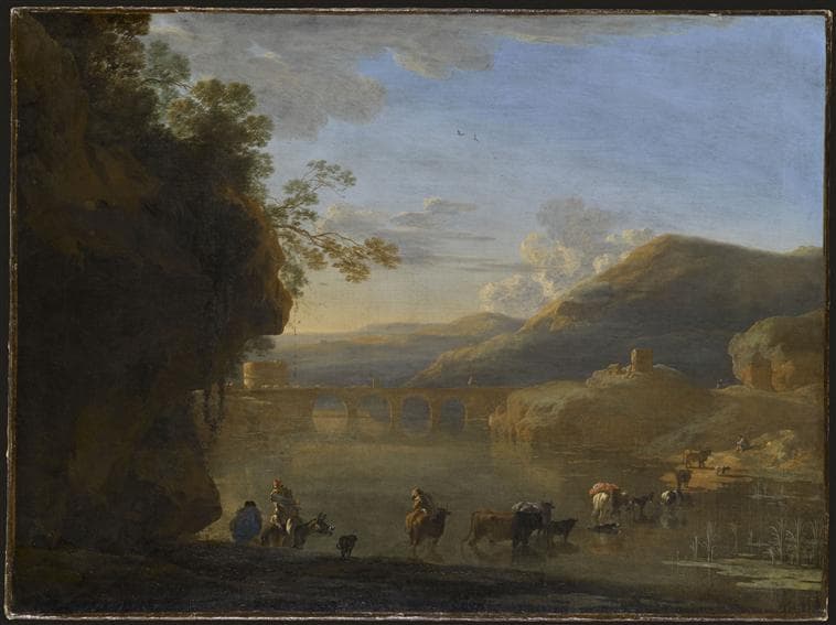 POP | Plateforme ouverte du patrimoinePAYSAGE AVEC UN TROUPEAU TRAVERSANT UNE RIVIERE