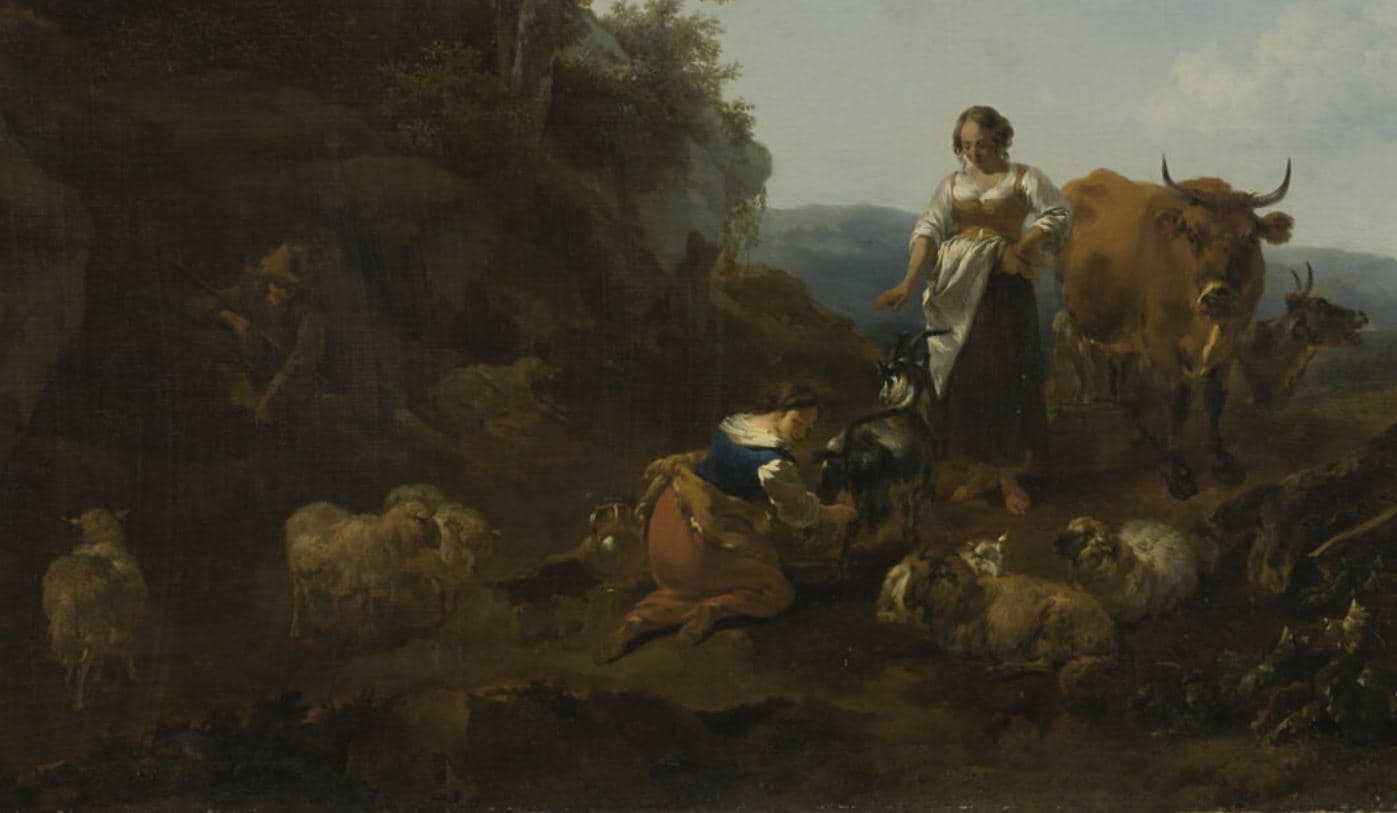 Bergère trayant une chèvre