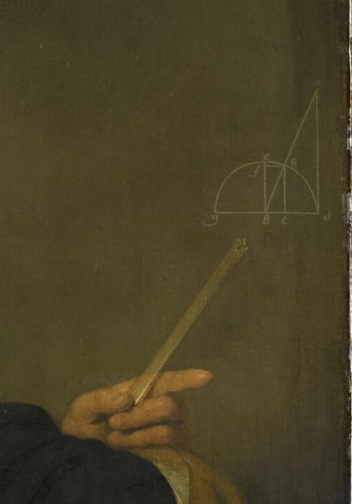 portrait d'inconnu (homme, à mi-corps, de trois-quarts, accoudé, mathématicien) ; dessin scientifique