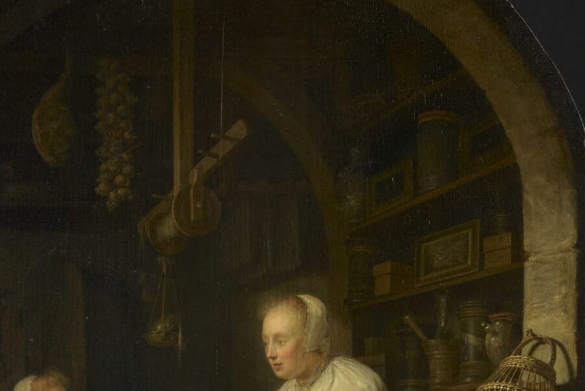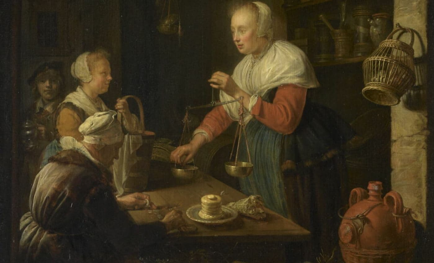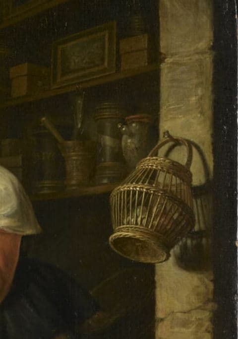 POP | Plateforme ouverte du patrimoineL'Epicière de village, avec le portrait du peintre à l'arrière plan ; L'Epicière du village (autre titre)