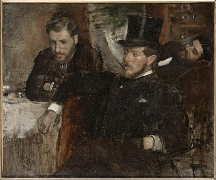 portrait collectif (Jeantaud Jean-Baptiste, homme, assis, de face, accoudé, Linet Pierre, homme, assis, de trois-quarts, chapeau, fumeur, Lainé Edouard, homme, assis, de trois-quarts)