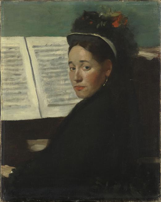 portrait (Dihau Marie, femme, assis, à mi-corps, de trois-quarts, musicienne, piano, partition, chapeau)