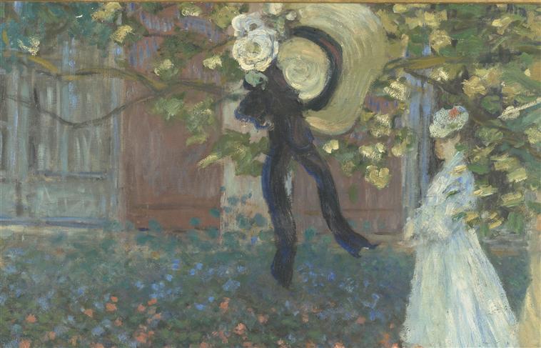paysage (jardin, Argenteuil, banc, table, ombrelle, sac, chapeau, enfant, Monet Jean, jeu, femme, promenade, arbre : en fleurs, géranium, fuchsia, effet de soleil) ; nature morte (fruit, vaisselle)