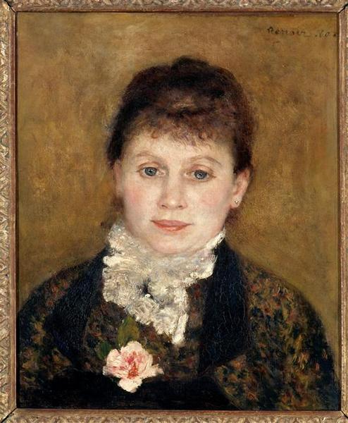 portrait d'inconnu (femme, en buste, de face, col : dentelle, fleur)