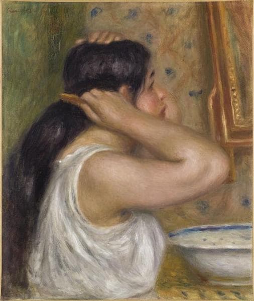 La toilette : femme se peignant