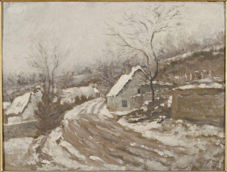 paysage (route, Auvers-sur-Oise, maison, neige, hiver, arbre)