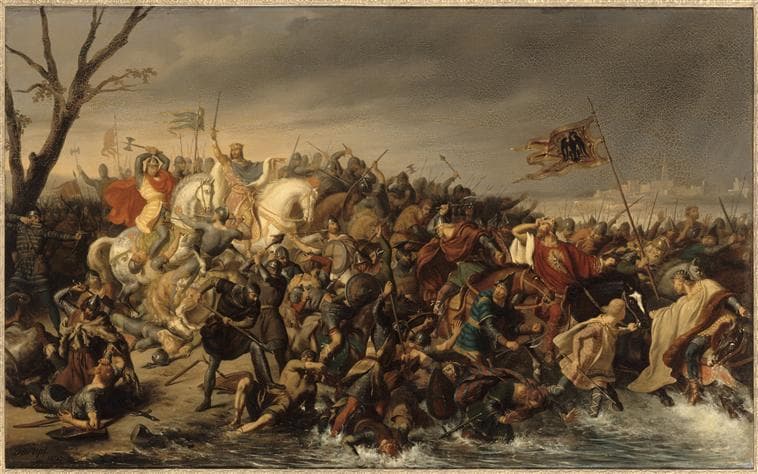 LOTHAIRE DEFAIT L'EMPEREUR OTHON II SUR LES BORDS DE L'AISNE.OCTOBRE 978