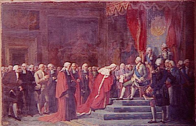 scène historique (Louis XVI, parlementaire, trône, noblesse, cardinal)