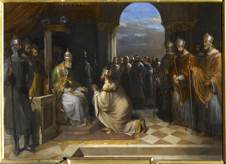scène historique (ambassade, Eugène III, croisade, Viterbe)