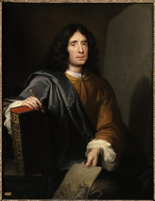 portrait (Champaigne Jean-Baptiste de, homme, à mi-corps, de trois-quarts, peintre) ; dessin ; livre
