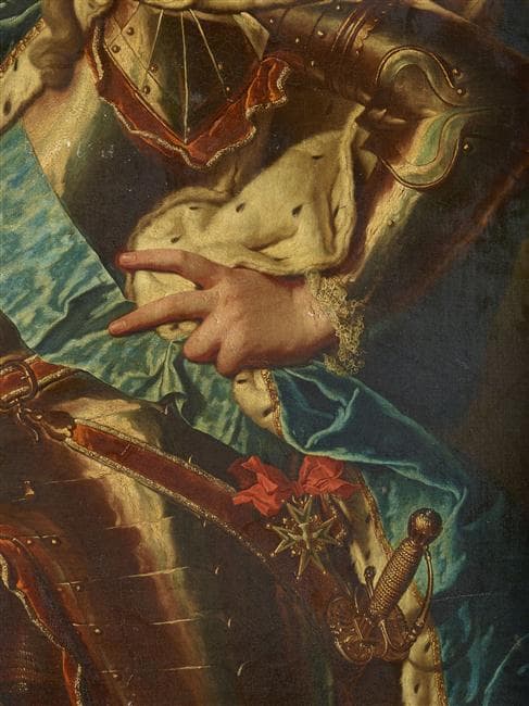 réplique d'un original de Rigaud exécuté en 1715 ; autres versions conservées au musée de Versailles (MV 5555, MV 4333)