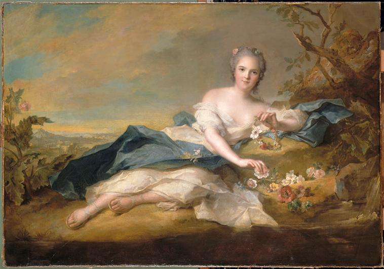 portrait (France Anne Henriette de, Madame Henriette, femme, couché, de face, fleur, allégorie : Flore)
