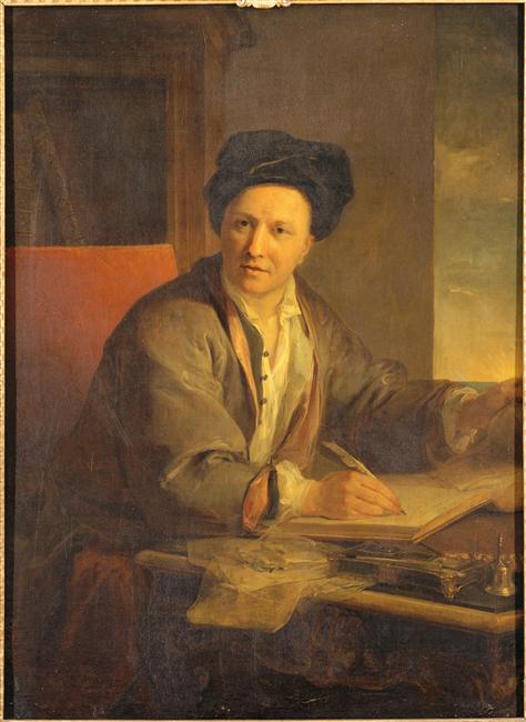 portrait (Fontenelle Bernard Le Bovier de, homme, assis, de trois-quarts, écriture, instrument d'écriture : plume, écritoire, encrier)