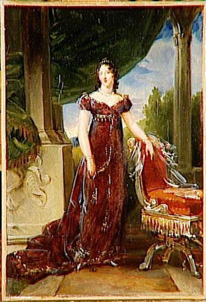 portrait (Courlande Dorothée de, Talleyrand-Périgord duchesse de, Dino duchesse de, Sagan princesse de, femme, en pied, de trois-quarts, robe, bijou, siège)