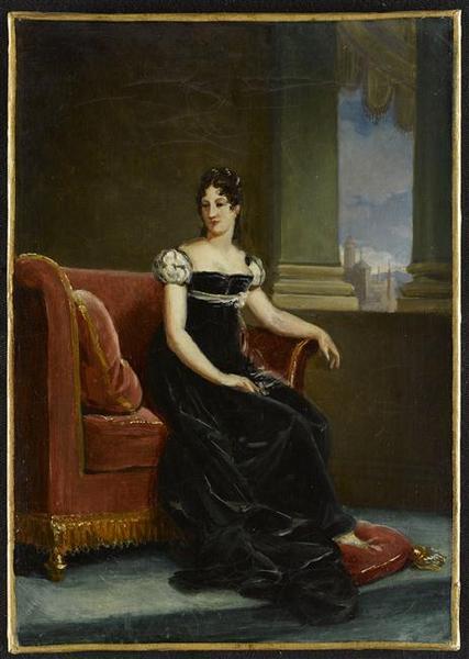 portrait (Clary Désirée, Bernadotte Désirée, reine : Suède, Pontecorvo duchesse de, femme, assis, de trois-quarts)